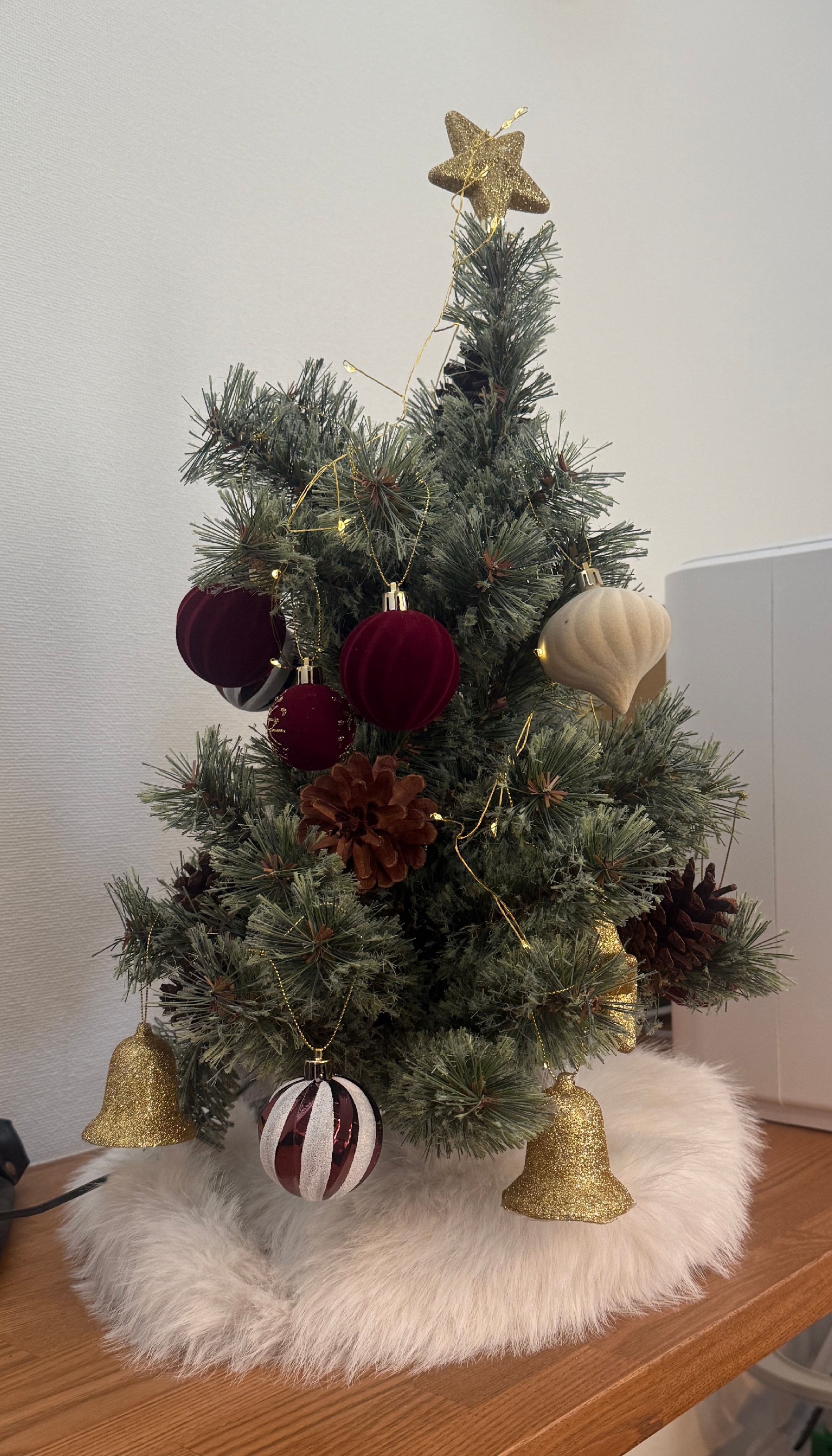 存在感あるくらい大きなツリーがほしい気持ちをグッと抑えて、片付けもお財布にも優しい、カウンターに置くことができるサイズを購入し、子どもと飾り付けをしたい小さな夢を叶えることができました😆