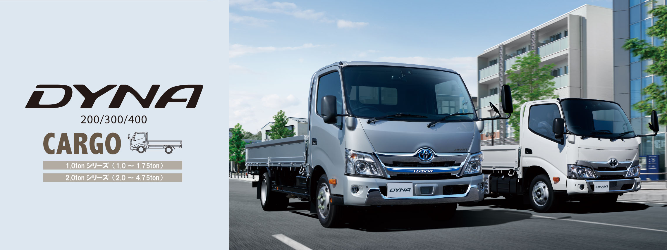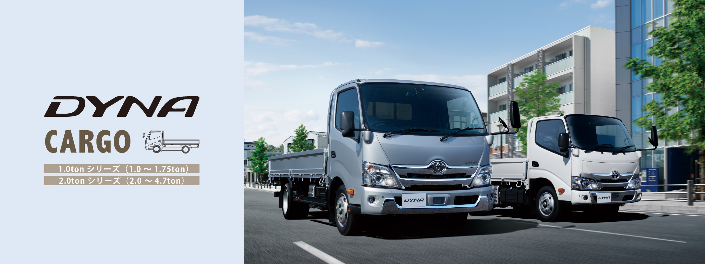 写真右はワイドキャブ・ロングデッキ・フルジャストロー・2.0トン積・ディーゼルハイブリッド車。“Gパッケージ”装着車。ボディカラーのシルバーメタリック<199>はメーカーオプション。 車型番号 93