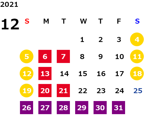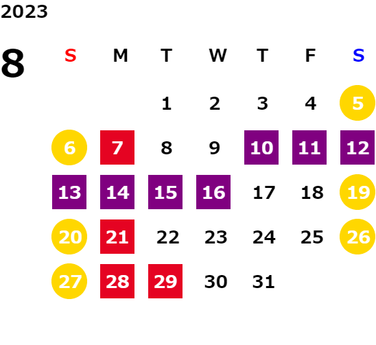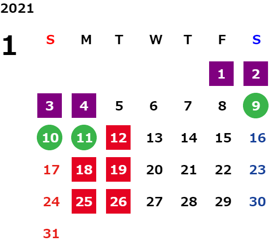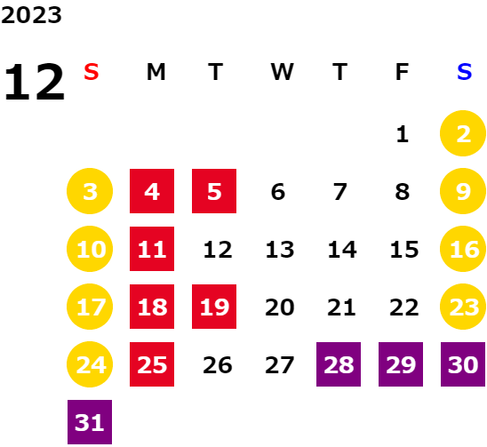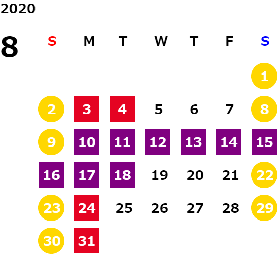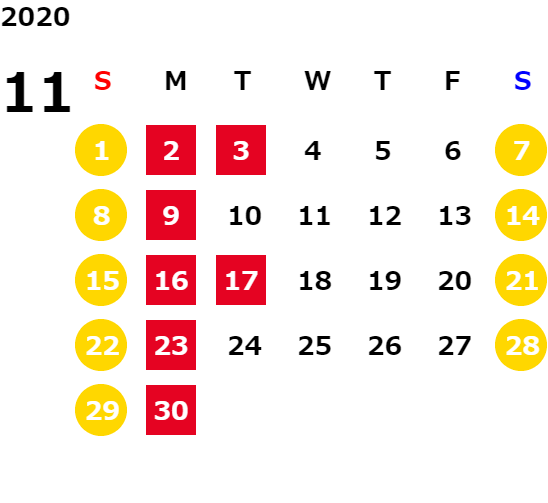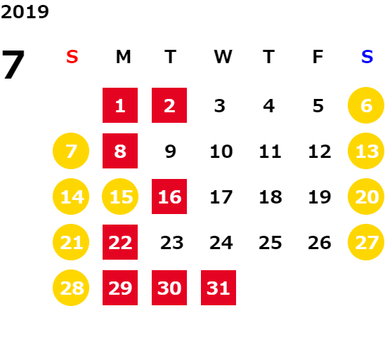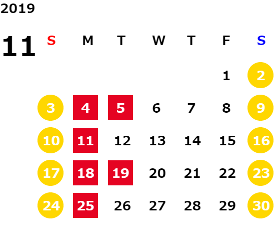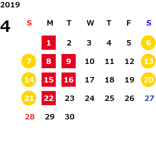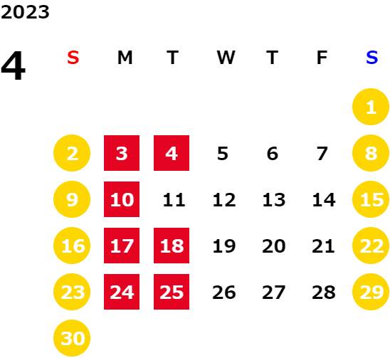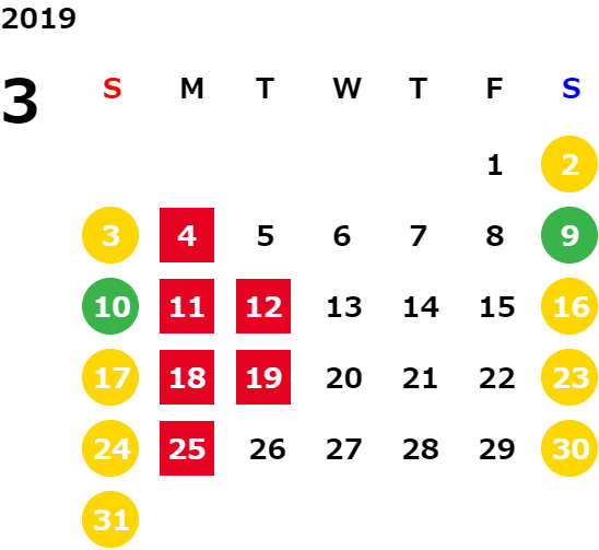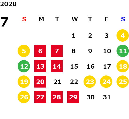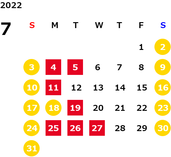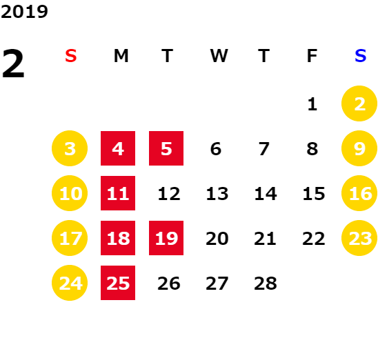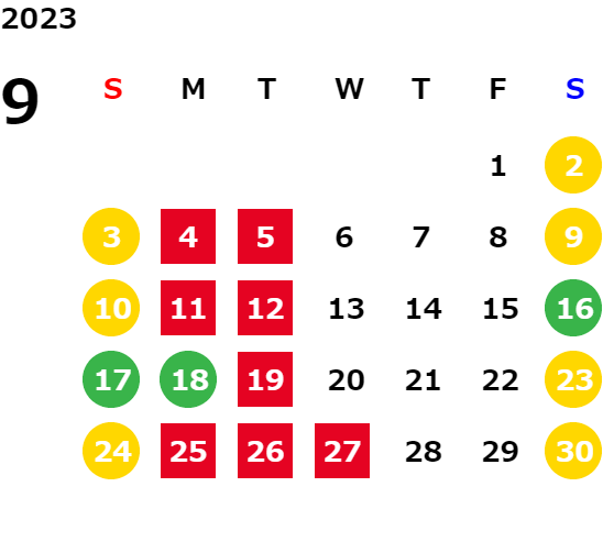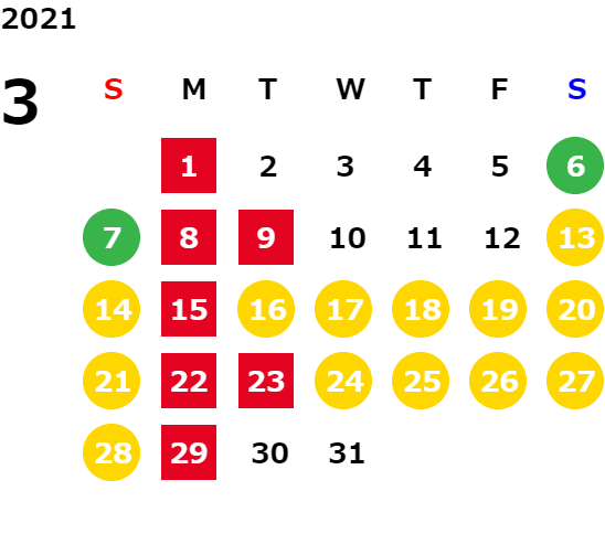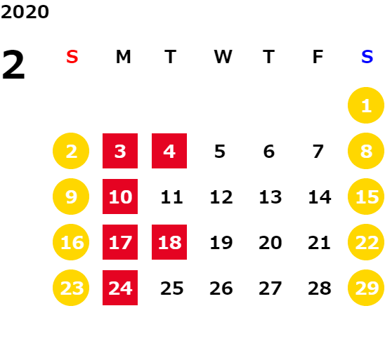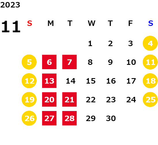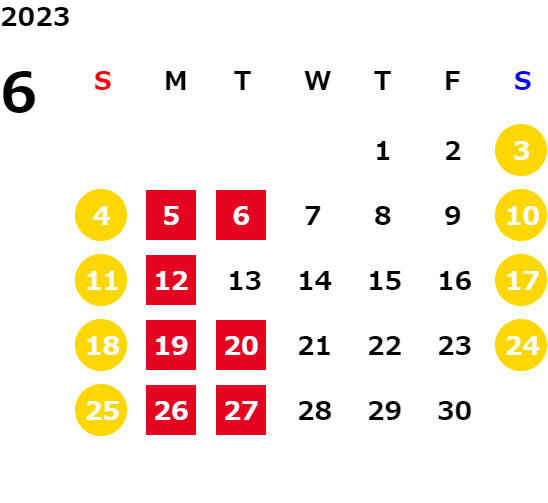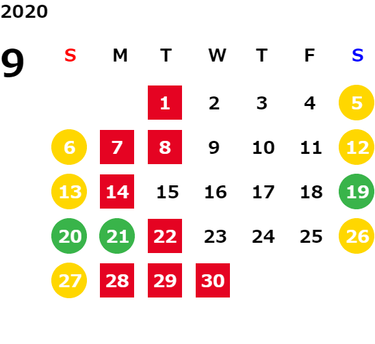 営業日カレンダー